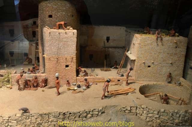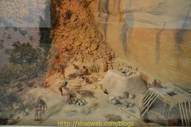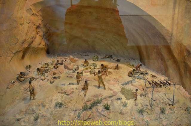 游客中心有各种展览。这些模型讲述了土著人的发展历史。