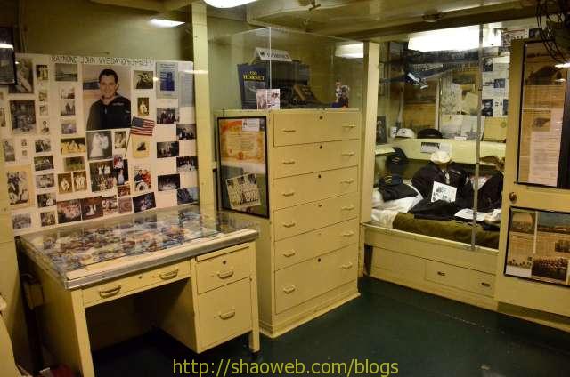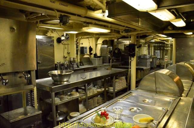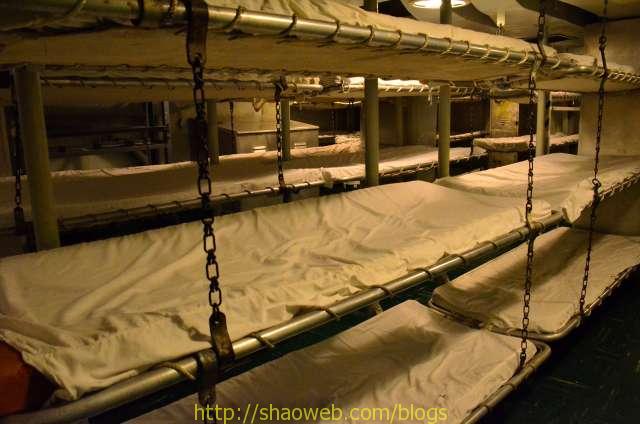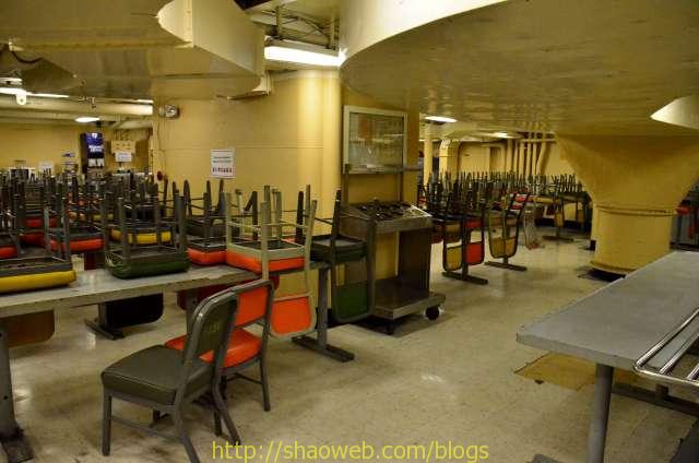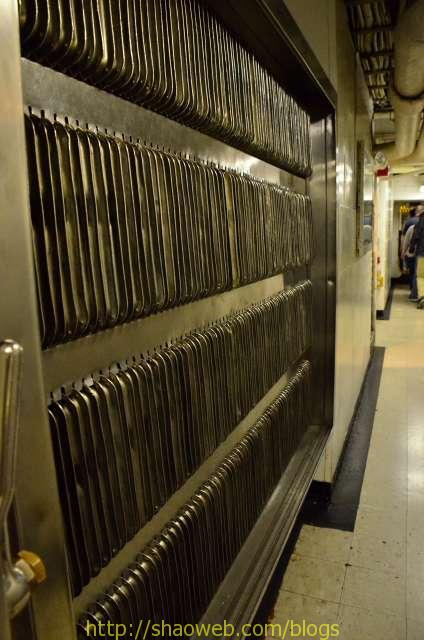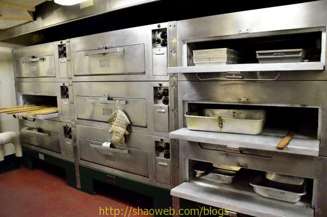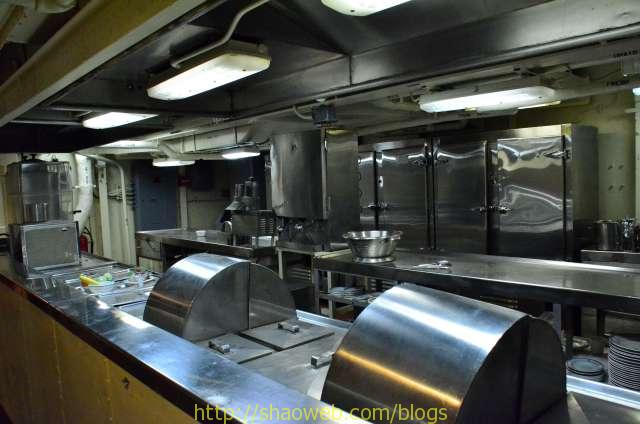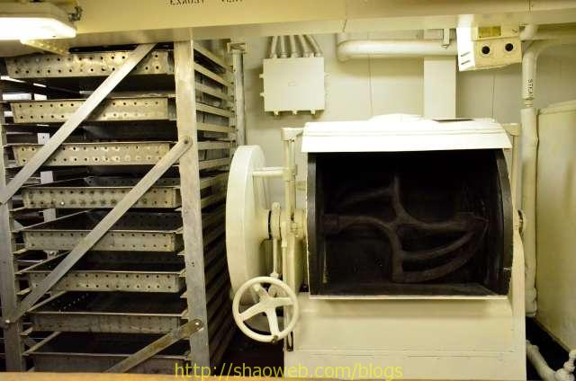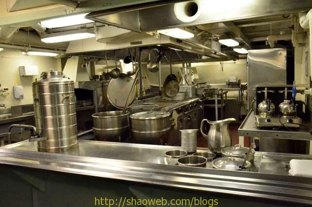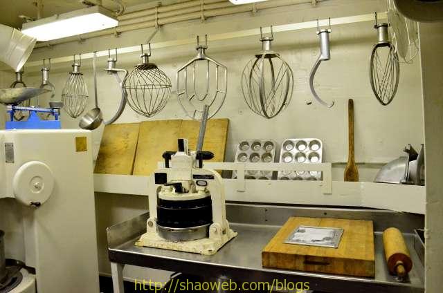 Hornet航空母舰博物馆 Pages: 1 2 3 4 吃和住 船上的人分为两种:水手和士兵。每种也都有一般人/领导之分。领导的待遇就跟一般人待遇不一样哈。 “小”厨房,各种东西更精致一些: 船上的单间带有卫生间,很多现在都变成了单独的展览室: 这艘航空母舰除了搭载飞机作为飞机起落平台外,还需要运送士兵。士兵/水兵吃的是大锅饭,住的是大通铺。 厨房里得力的厨具看得我眼花缭乱: 切面包片的: 大烤箱: 这个应该是和面的机器: 各种搅拌用的搅拌头: 大厨房曾经的热闹景象: 吃饭的时候,每人领一个饭盒: 大餐厅里的桌椅,桌子都有一个突出的边,防止饭盒滑落: Pages: 1 2 3 4 Share this:ShareEmailPrintFacebookPinterestLinkedInTwitterTumblrRedditPocket