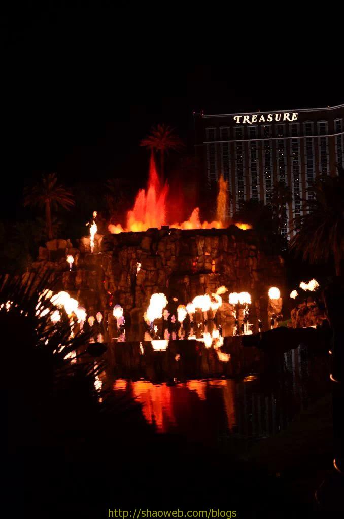 Mirage酒店门口的火山爆发还在,晚上7点开始,每整点爆发一次。