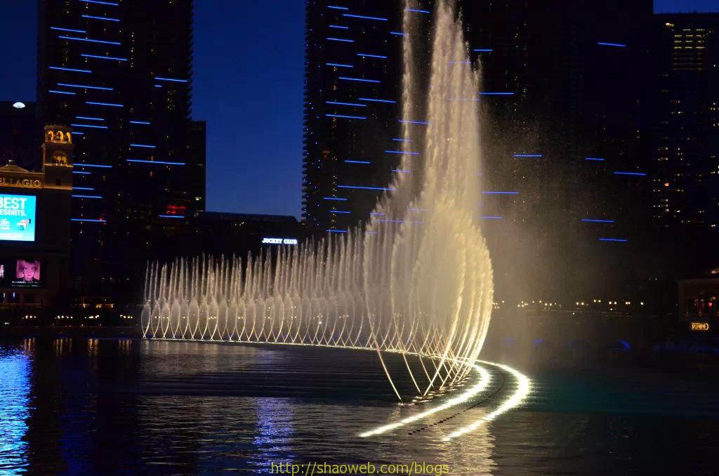 Bellagio的音乐喷泉下午4点开始,整点时播放两首歌。晚7点开始每半小时一次。