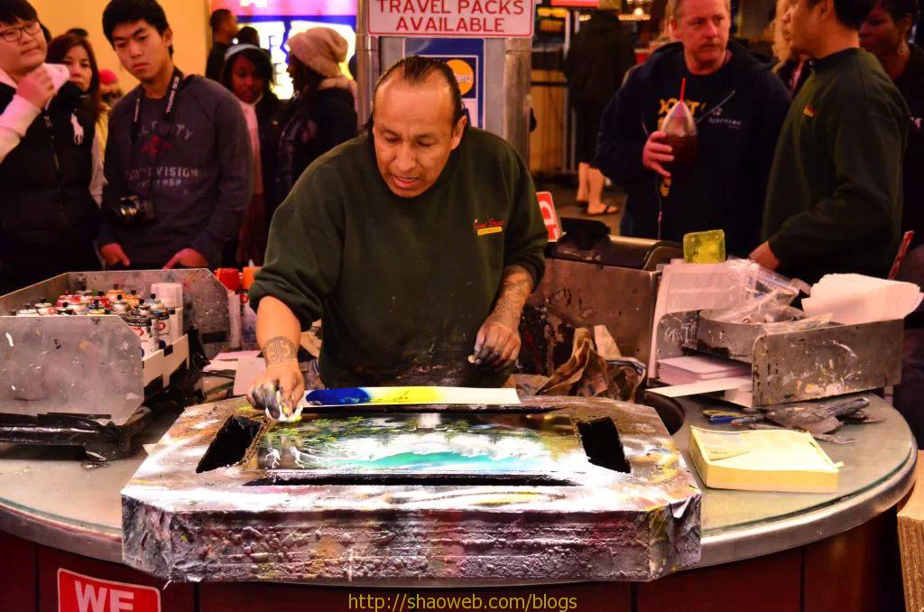 或者坐在画摊上,让人画一幅漫画,纪念一下自己在赌城输掉一切的悲惨经历