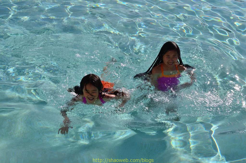 早上起床孩子们要求要去游泳池看看,前一天晚上侦查过,9点到5点开。所以我给孩子们半个小时玩游泳池的时间,唉,小区的游泳池天天开着她们不去,这个要等到9点的,她们反倒惦记着,真是书非借不能读,泳池非旅馆不能游也!据说水温比自家小区的还凉一些,可就能玩得不亦乐乎,一大早也不嫌冷。